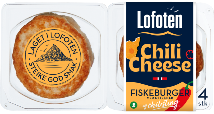 Lofoten Chili Cheese er en skikkelig juicy og spicy fiskeburger utviklet med smak i førersetet. Med Chili Cheese Fiskeburger på bordet får du en skikkelig digg og rask fiskemiddag! Burgeren er laget i havgapet på vår fabrikk i Lofoten.